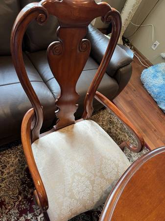 The set includes 4 elegant side chairs and 2 stylish armchairs, making it an ideal choice for both everyday meals and special occasions. The table is in excellent condition. It requires reassembly...