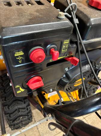 2 Stage Gasoline snow blower with electric start Type: Dual-Stage Engine: 357cc OHV 4-cycle Clearing Width: 33”″ Starter: 110V/electric starter Runs great