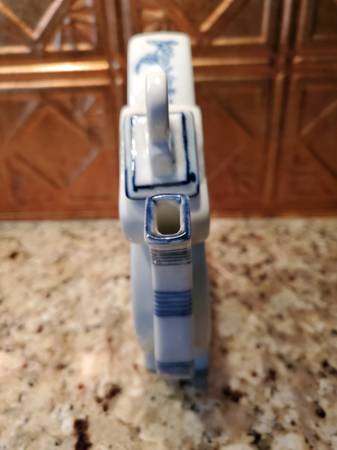 Decorative ceramic teapot with intricate blue floral design. Approximately 8" tall by 8 1/2" wide Click on "more ads by this user" to see other items I am selling.