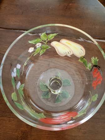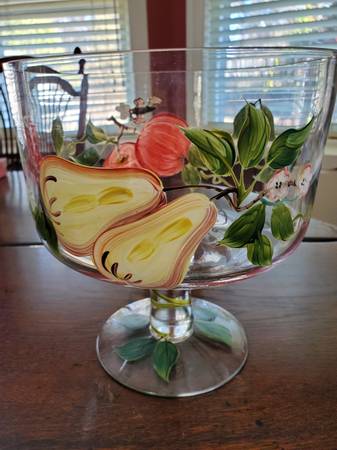 Beautiful Hand Painted Glass Fruit Bowl - Approximately 7 1/2" Diameter by 8 1/2" tall