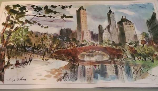 Vintage 1960s Essco Tiger /Slogan laminated placement featuring Central Park, New York City. This is not a hardboard placement - it is flexible SIDE 1: Print of a signed painting that has been laminated SIDE 2: Essco tiger with slogan "Put a tiger in your tank" and paw print border Item does show a couple very minor spots typical from use.
