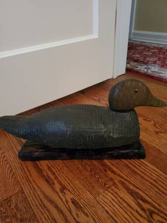 Vintage Hand Carved Wooden Duck on Wooden Stand - Duck is approximately 16" long - Stand is about 13" long