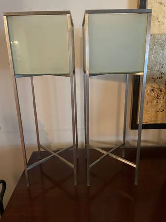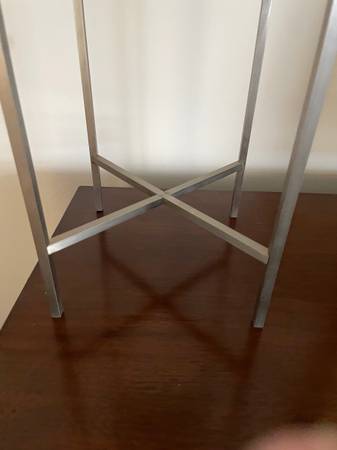 2 Gorgeous frosted glass on stainless steel Legs stands that can be used for planters in the spring summer and candles in the fall winter! Both for $75