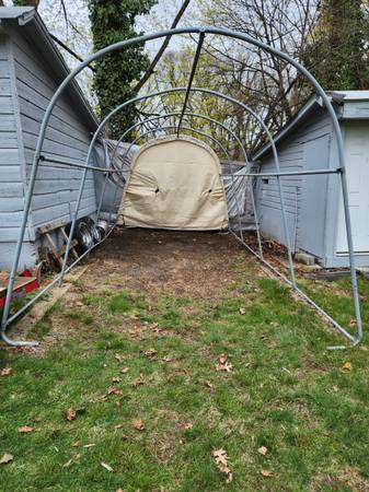 Shelter Logic Frame only. 8' High / 20' Deep / 9' wide at base Dismantled by purchaser Local pick up only