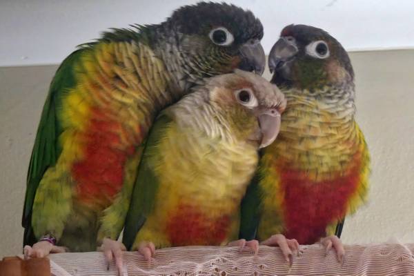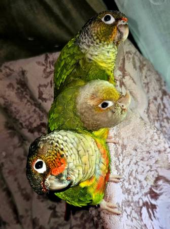 2 green cheek and 1 pinaple conure.