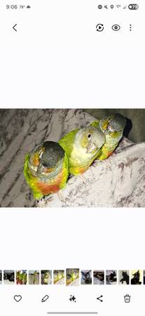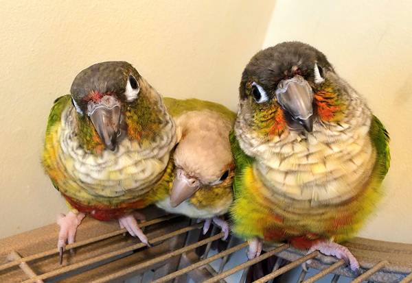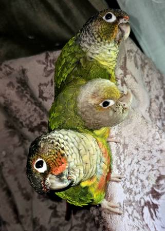 2 green cheek and 1 pinaple conure.