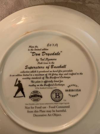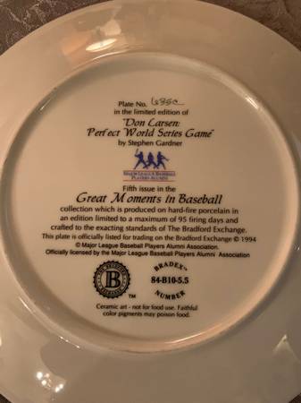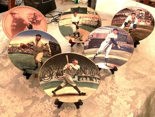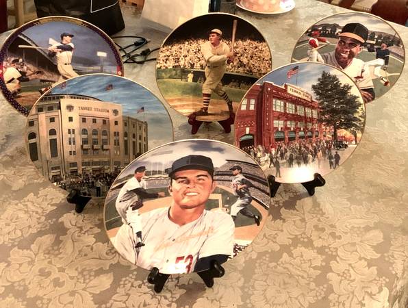 Collectable Sports Plates, Limited Edition Collection, each plate numbered, C.O.A. on back of plates. Each plate is beautifully designed, individually numbered, crafted in fine porcelain with most trimmed in 22K gold and all maintained in excellent condition. The Sports Legends plates include 3 different Babe Ruth plates, Tris Speaker, Billy Martin, Don Drysdale, Don Larsen, Fenway, Yankee Stadium, Frank Robinson, Ted Williams, Lou Gehrig, Bob Gibson, Rogers Hornsby, Joe Montana, 16 plates all together. Also includes 16 classic plate stands. Asking $45 show contact info