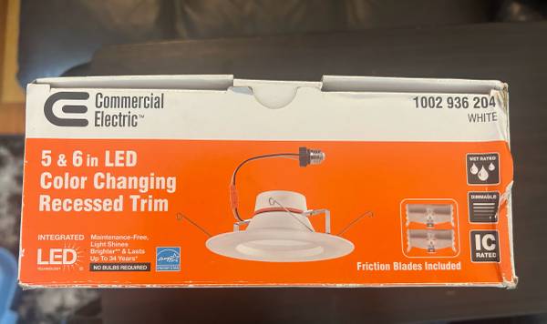 This is a NEW Commercial Electric 5 & 6 inch LED Color Changing Recessed Trim Down light Adjust from Warm / Soft White / Neutral White / Bright White / Daylight SAVE MONEY and change to recessed...