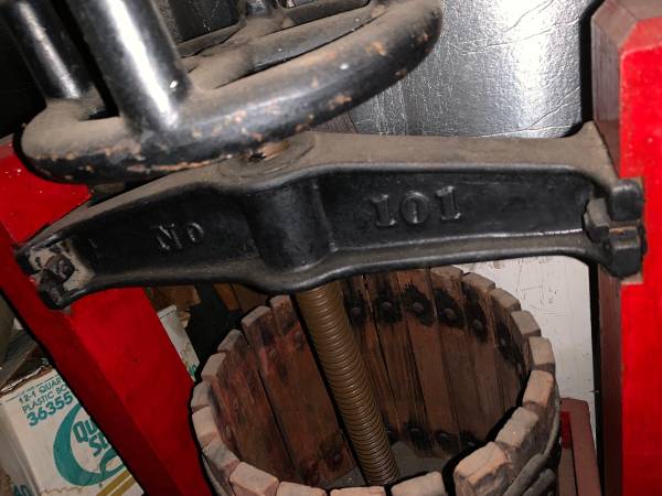 (1) Vintage, Wooden Wine (Grape)(Fruit)Press. Markings: model No. 101; (Oasis,Hocking Valley Mfg Co., Lancaster, OH.)