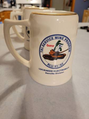 Mugs from Lockheed Electronics, Denville Division from GEMSS and GATOR programs. These are new and never used condition. They have only been displayed. $15 for all 6 mugs. Please call show contact info