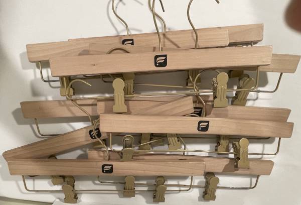 Set 20 Wooden Pants or Skirts Metal Clip Hangers w Rubber Grips 14"