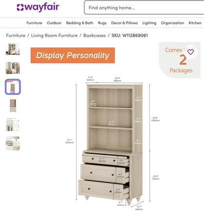 Unopened Wayfair Bookcase – $155 (Retail $299) – Light Beige –...