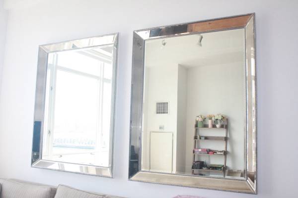 Restoration Hardware Beaded Wall Mirror 60” X 48” Chrome Set of 2 GORGEOUS Pickup in Bayonne Please email your contact information if interested.