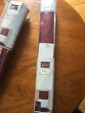 two matching red fabric woolrich roman shades. $30 for pair 23'' by 72' New