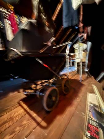 1) Antique Prom Baby Carriage by Atlas - folds up, padded, has brake, storage, rain top, adjustable, original paperwork - high end baby carriage can be used as is or repurposed $60