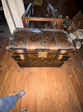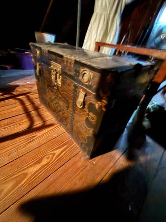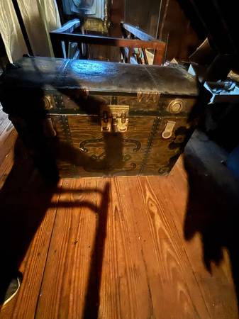 3) Blue Large Chest Wood and Metal (steamer trunk) - great for storage/hope chest/repurpose $65
