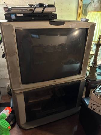 9) RCA working Projection TV and DVD/CD player and cabinet (make offer - works good)