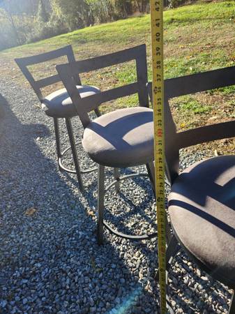 This is 4 steel stools. Quality items, in good condition, all welded/powder-coated steel. Ball-bearing swivels! No rips/tears/etc. Used, but not abused. Measurements are in last photo. Asking $200....