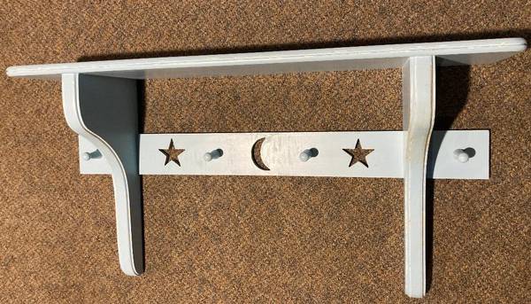 Kids Pottery Barn, stars and moon. Quality, paintable, clean shelf in patina-aged baby blue. Very well made. For nursery or child's room. Thanks for looking.
