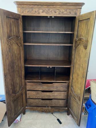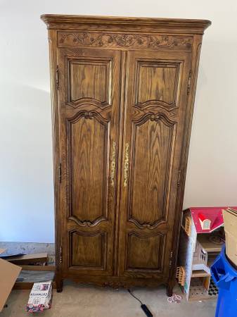 Armoire, Wardrobe Closet, Oak, Brown Very High Quality. We think it could be Ethan Allen. 80.5 H x 38.75 W x 19 D