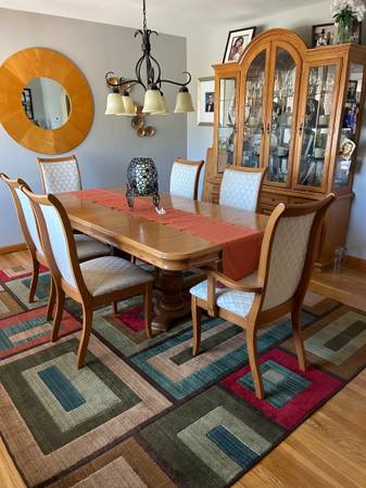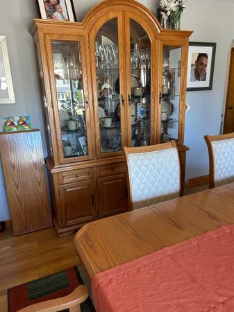Dinning set table 2- leaf 6 chair and China cabnet in excellent condition. Not a mark . Like new