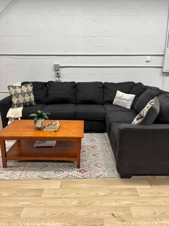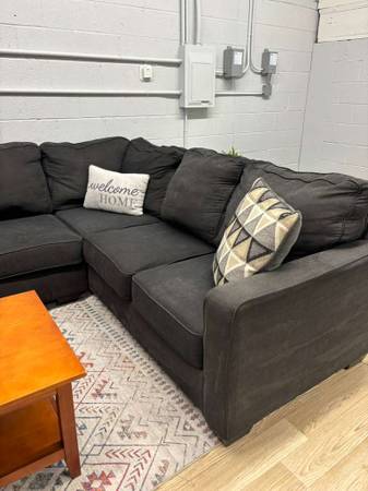 The Ashley Alenya Sectional offers a spacious, cozy layout with plush cushions and a modern profile that fits effortlessly into any living room. Its charcoal upholstery is durable, stylish, and easy to maintain — ideal for families, apartments, and open floor plans.