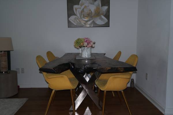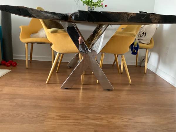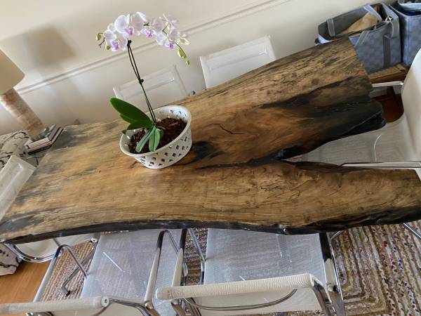This live edge wood table is spalted hard maple Length: 73" Width: 48 (On the widther side) Width: 35" (On the shorter side) Thickness of wood: 3"