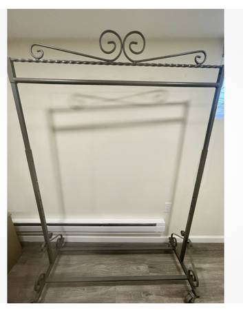 Silver / grey adjustable clothes rack with wheels ! Please note : dimensions are for current pictures only. Height is adjustable/// Pick -up ONLY
