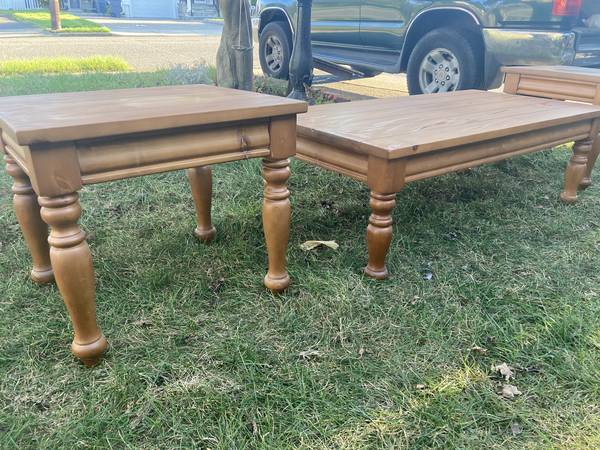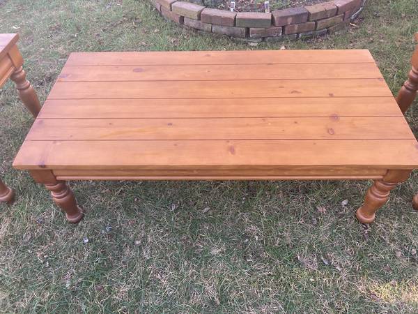 vintage Pine wood coffee table and end tables Large table - 4' x 2' End tables - 22" x 24"