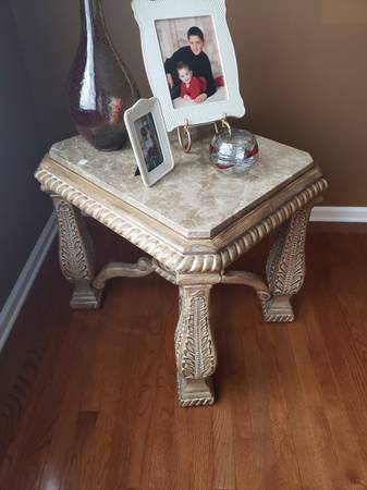 -End Table (Rectangular with natural stone top): 28" L x 24" W x 25.5" H
