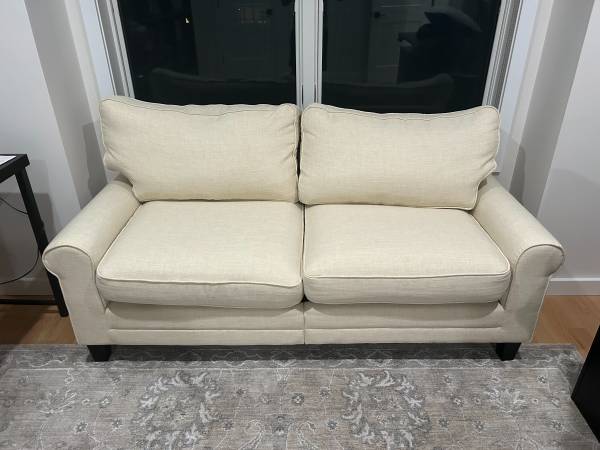 Serta Copenhagen Rolled Arm, Easy Care Polyester, Soft Pillow Back, Pocket Coil Seat Cushions, Removable Covers, Loveseat or Couch for Small Spaces, Living Rooms or Bedrooms, 73" Sofa, Buttercream