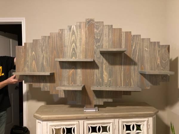 • Handmade solid wood plate display (soft grey stain). Measurements will be added. Wall mounting bracket included. Bracket perfectly supports the weight of the display with all the decorations on it.