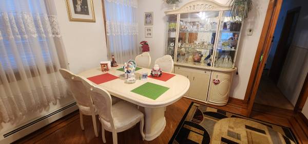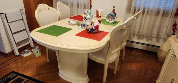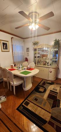 Like new lightly used on holidays Table is 74 inch long expands to 86 inches Table is 41 inches width China storage Height- 81 inches Length- 65 inches Dept - 16 inches Cash and only pickup Direct...