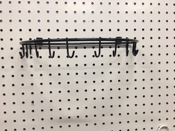Black coated display racks company display unit showcases product in a small compact space Holds 12 stules on the 12 hooks 12" wide 6.5" diameter at center of rack has two clips to display header...