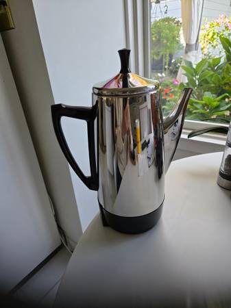 Bought 9/25/25 for $88 and have used a few times. Like new and according to specs metal percolator so NO PLASTIC!!! We had bought another percolator at the same time and decided we do not need 2 so...
