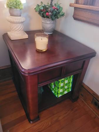 Beautiful-gorgeous two end and center table, center table top lifts up to better use as coffee table. You’ll fall in love when you see pictures. End table 50each center table 60$