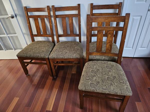 Very sturdy Ashley dining chairs for sale. Each one costs over 150 dollars. I am selling 4 chairs for 100 dollars. Please feel free to email me. Thank you.