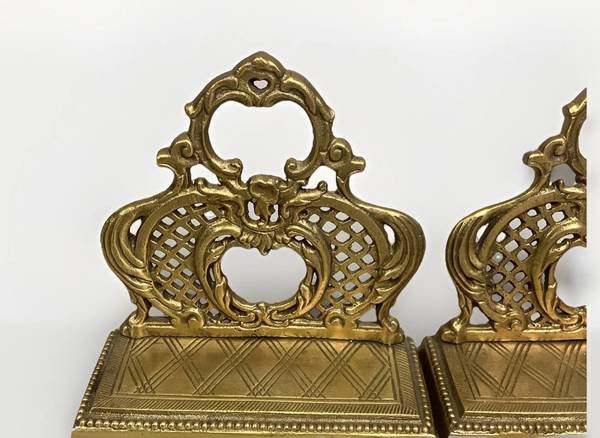 VTG ANNA GRIFFIN BRASS VICTORIAN LATTICE STYLE BOOKENDS - TWO'S Co. in good condition overall. This measures 5.5x2.25x5 5/8”. These weigh 5.5 pounds