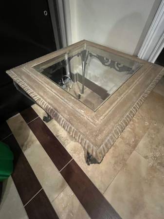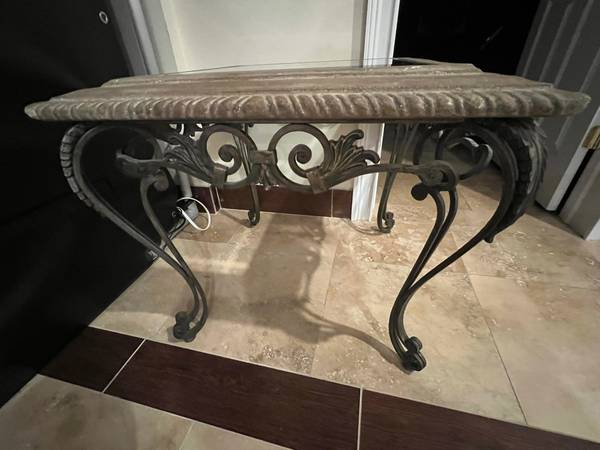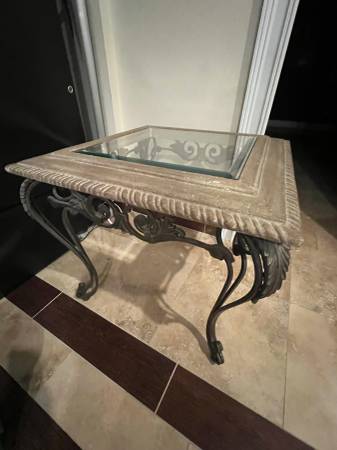 Side/Accent Table in Faux Stone and Metal—Great Condition 30” square x 24”h Smoke free household