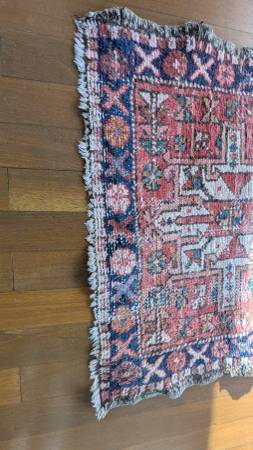 Not sure if this is vintage or antique, but it is definitely an old red Persian wool rug! Not from a chain/ box store. No holes or tears. Binding is in decent shape. Rug is a bit darker than it...