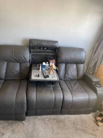 Bought one years ago at Jordan's furniture has double recliners on each side with Center battery charger for phone and electrical outlet one small hole shown in picture nice piece This is a nice...