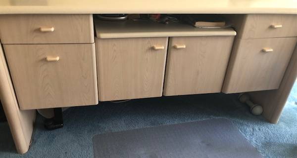 Office Furniture includes Desk, Credenza with slide out for laptop, and 3 book shelves. $795