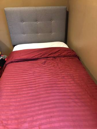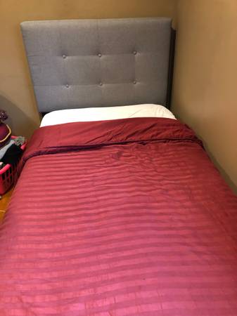 Twin bed with head and footboard Brand New $700 Mattress and Box Spring included. The first picture shows the new mattress. Used for guest room Please leave your name and number and I will call you...
