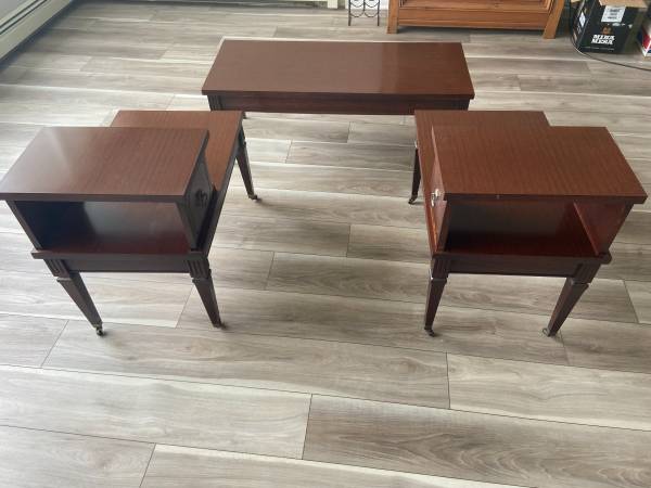 Coffee 41 1/2" x 17 1/2" and 15" high End Tables with draw 27 1/2 x 17 1/2. 16" high and 24" high