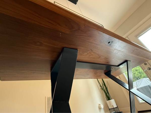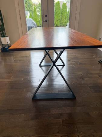 Custom made walnut kitchen table. Can also be used as a desk. Can fit 6 people/chairs at the table comfortably. Table solid wood walnut top is in excellent condition with no major flaws....