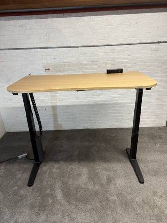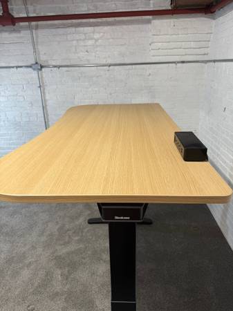 • 29″×58″ Maple Laminate Top: Large, modern work surface in clean maple finish (radius corners, woodgrain pattern).