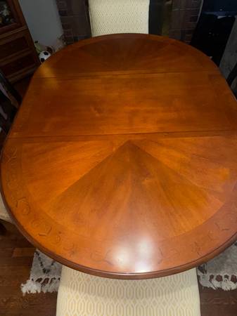 Elegant wooden dining table with mixed chairs, perfect for a cozy dining room.