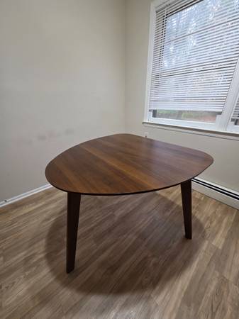 My Bettie triangle table is the perfect shape and size for small dining rooms and kitchen nooks. And, its flared legs give it a touch of retro charm to make your space pop!