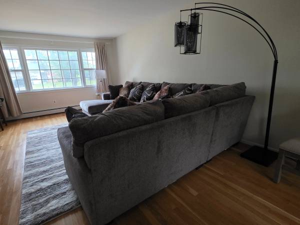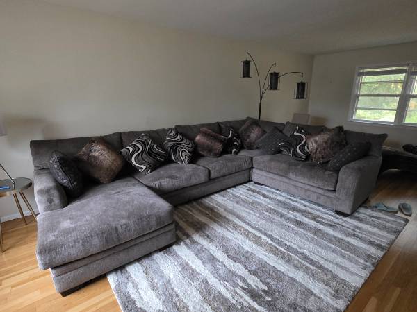 Nearly brand new, with 12 pillow. Width: 150" Depth: 98" Weight: 449 lbs Seat Height: 19" Seat depth: 22.5" Seat Cushion Thickness: 7.5" Pillow Dimension: 20" x 20" Arm Height: 25.5" Arm Thickness:...