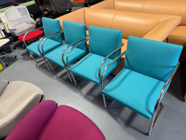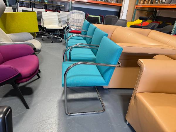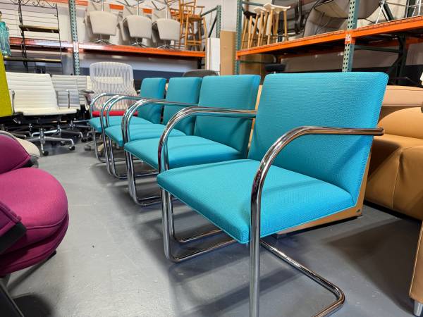 We have 30 chairs available. Authentic Knoll Brno tubular arm chairs. All are clean and in very good shape. Gorgeous textured fabric, all authentic Knoll. Chairs retail for $2,500+ EA. Selling for $400 EA. Pick up from our warehouse in Saddle Brook, NJ. Please email me if you have any questions. Thank you.